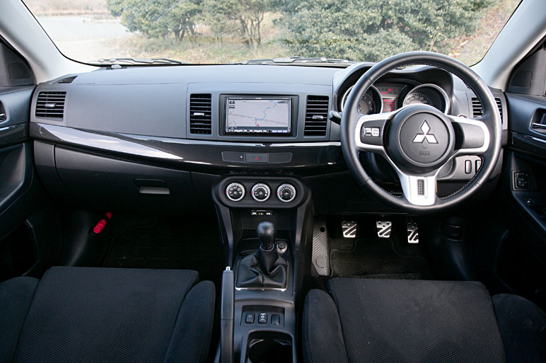 Во многих случаях машина ведет себя как очень точно отлаженный механизм, обращение с которым взрослому кажется забавой. Да, управлять автомобилем Lancer Evolution действительно кажется не более чем забавой, если, конечно, едешь по обычной дороге, где действуют жесткие ограничения, и где вопрос — а что делать с машиной на высокой скорости, — неактуален. В самом деле, рулевая колонка кажется чуть ли ни намертво привязанной к управляемым колесам — стоит только пошевелить пальцем, и машина сразу же отреагирует должным образом, подвеска также действует так, что никаких тебе лишних движений. Все это рождает уверенность, что все под контролем, и что как захочешь, так машина и пойдет. И это несмотря на то, что она весит довольно много — полторы с лишним тонны. Нет, иметь дело с таким послушным автомобилем и вправду приятно! Тем более, что и двигатель у него тоже соответствующий: даже когда машина движется медленно, он всегда готов развить мощный крутящий момент. Правда, механическая коробка передач неизвестно почему имеет только 5 скоростей, хотя когда трансмиссия с двойным сцеплением (система SST), их предусмотрено целых 6. Но нет, мы обойдемся и так! Но зато как приятно обращаться с рычагом переключения! Передача включается четко, рычаг точно фиксируется в нужном положении — нет, действительно, так бы сидел и только и делал, что переключался.