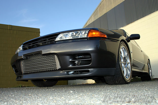 C конвейера сходят R32 GT-R всего нескольких цветов: серого, белого, черного, бордового и синего — как будто только такие могут быть в палитре задиры. В плане экстерьера Anguss добавил лишь боковые юбки Nismo и накладки на пороги Trust. Эти незначительные внешние изменения акцентируют и без того мускулистые линии GT-R. Ездит машина Anguss'а на 10-спицевых дисках Blitz R1, обутых в резину Goodyear Eagle F1 размерностью 275/35 R18. Такой выбор дисков и резины отлично гармонирует с основной темой авто.