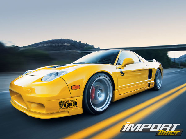 В области подвески NSX получила более жесткие койловеры Tein Flex. 22-мм передние и задние стабилизаторы поперечной устойчивости Dali Racing, передняя распорка от NSX-R и нестандартный крепеж Titanium Dave помогают устранить гибкость подвески. Обалденные диски Advan Kreuzer V (18х8 спереди; 19х10 сзади), «обутые» в покрышки Falken FK452s (225/35 R18 и 275/30 R19 соответственно), лишь слегка прикрывают тормозные механизмы Brembo GT и карбоновые дефлекторы тормозов Dali на передних колесах или тормозные диски Power Slot и тормозные магистрали Dali Racing на задних.