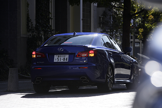 Еще не садясь за руль, а лишь присмотревшись к предоставленному мне на время автомобилю Lexus IS F, я уже понял, что мне повезло. Знаете, если в настоящее время и существуют такие машины, которые только увидишь и сразу восклицаешь: «Ох, хороша!», то IS F — несомненно, одна их них. А что, собственно говоря, в ней особенного, если сравнивать с базовой моделью Lexus IS? Ну, стал автомобиль чуть ниже, ну несколько увеличился в ширину. И вдруг — что за чудо! — видишь, что машина-то, оказывается, с норовом, что она только того и ждет, чтобы рвануться с места в карьер! И все детали ее внешности свидетельствуют именно об этом ее желании: посмотрите хотя бы на переднюю часть, где расположены широкие впускные отверстия, готовые хоть сейчас начать ловить встречный воздух. Или гляньте на задний бампер, которому придана форма диффузора, и из-под которого выглядывает 4 выхлопные трубы. Словом, крутая тачка, и весь разговор! Но сказать, что это такая, знаете ли, дикая, расхристанная «крутизна», нельзя. И знаете почему? Потому что на удивление точно сопрягаются кузовные панели, потому что сам кузов выкрашен дорогой краской, словом, порода, которая чувствуется во всем, что, впрочем, и неудивительно — все-таки Lexus!