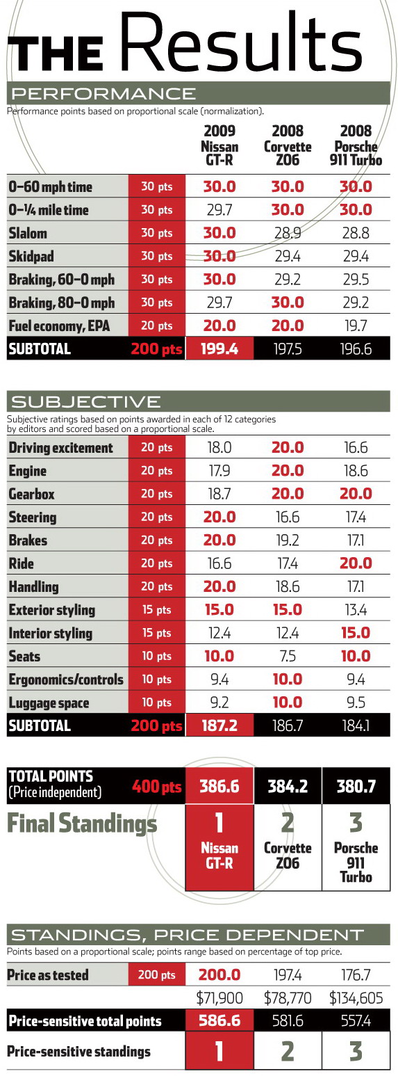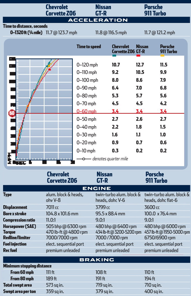 Сравнительный тест: Nissan GT-R, Chevrolet Corvette Z06, Porsche 911 Turbo