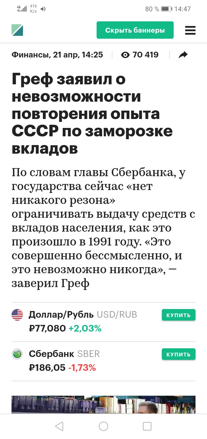 снял деньги со счёта, жаль что в банкомате нельзя сделать это в долларах. не удивлюсь, если я завтра в утренних газетах прочитаю о дефолте