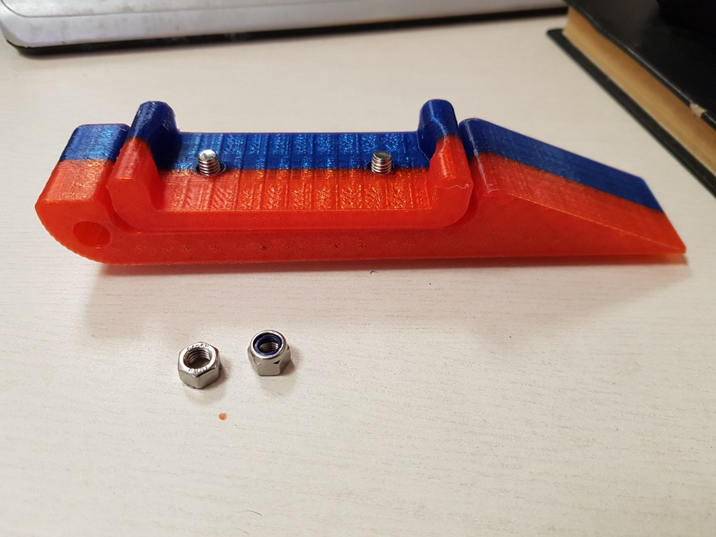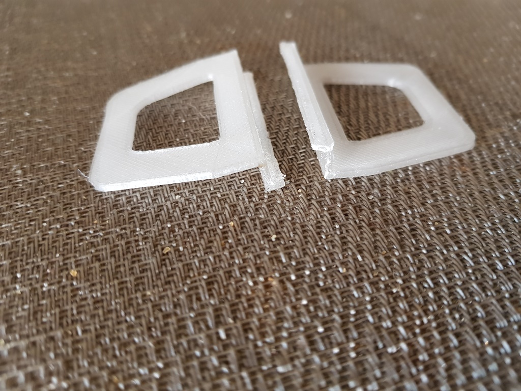 Есть модели ручек...такие, сякие и вообще всякие, но как-то не нашлось такой, которая крепится под шнурок... По большому счёту пофиг, деталь простая даже для меня, ламера в моделировании...Сел за ноут, потыкал кнопки, повозюкал мышкой и деталь (две) пошла в печать. Сорок восемь минут и принтер позвонил,что всё готово...Детальки встали на место ничуть не хуже родных...