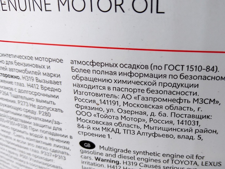 во-вторых, я никогда не поверю, что масло Тойота производится на одном-единственном заводе, как и упаковка к нему. вот например Мытищи разливают: