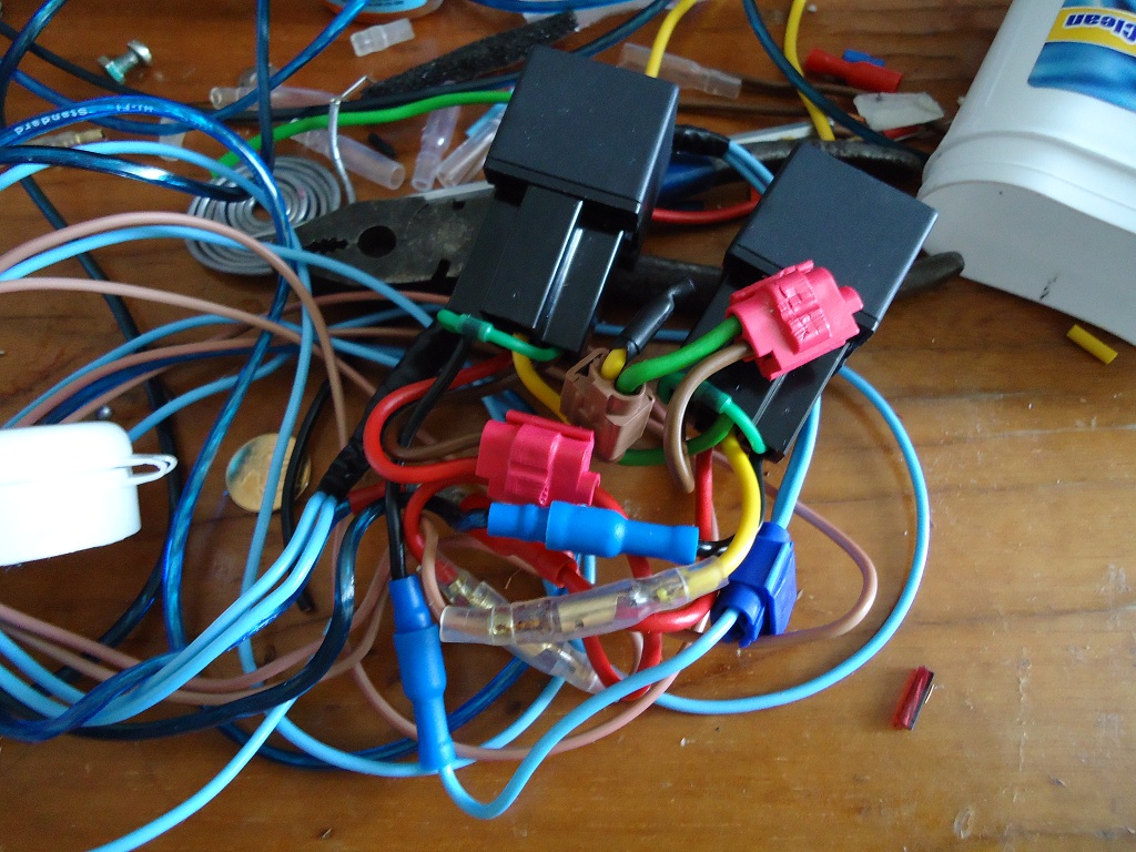 подпаиваемся к минусам (на схеме "C" и "D"), которые будут отрубать DRL/ДХО при включении ближнего, дальнего или моргания фарами, предварительно проверяем появляется ли там "минус", когда включаем ближний и моргаем фарами.