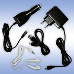 Комплектность: штатный держатель в машину, сетевая зарядка от 220, автомобильная зарядка (внимание валдельцев грузовиков) 12-24В, наушники, миниюсб-шнурок, шнурок для av входа..