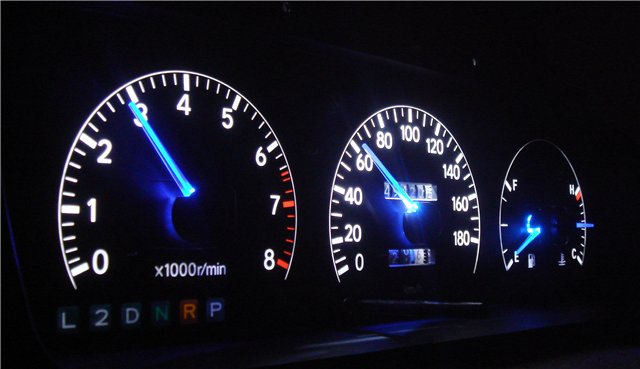 обратите внимание, как особенно на последней фото, красным засвечивает не только стрелки, но и одометр и надписи на табло, в реале это смотрится ноу гуд