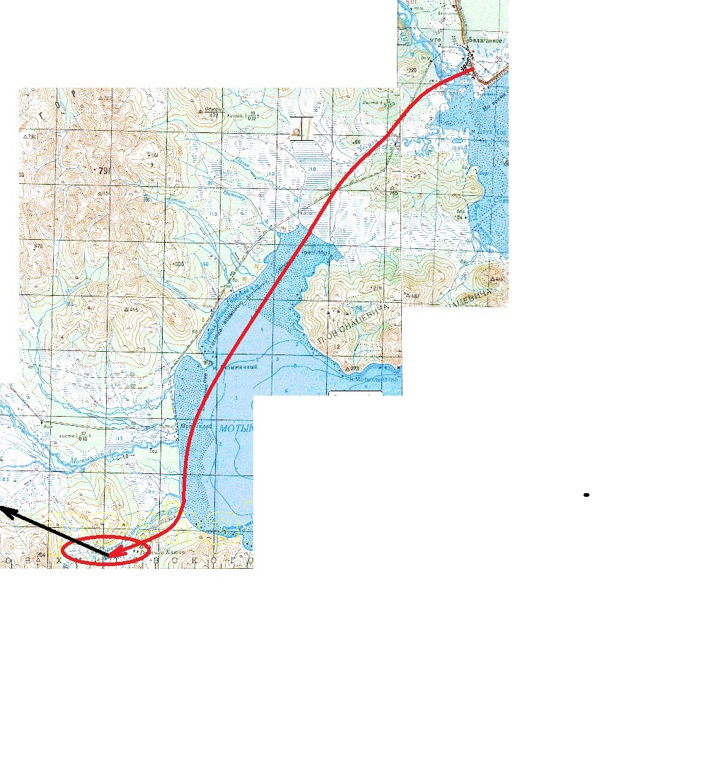 а вот дальше начиная от устья мотыклейки врядли будут уверенные путики, там мы и потеряем все остальное время..