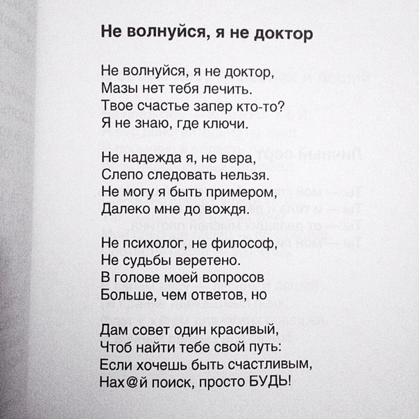 "Однажды ты поймешь, что осталась одна..." Однажды ты поймешь, что осталась одна. На самом деле ты всегда была одна, но это понимание обычно запаздывает. Родители умирают, мужья изменяются, любовники изменяют, дети растут. Или ты сама уходишь от них потому, что они теперь чужие. Ломается то, что работало еще вчера. Не важно, что именно произойдет, помни: одиночество всегда за спиной, как зима. Зрелость — это способность быть одной, не драматизируя. Готовиться лучше заранее, я расскажу как. Всех, кроме близкой родни, можно заменить. Никто и ничто не бывает в одном экземпляре. Впускай новых людей в свою жизнь, даже если не понимаешь пока, есть ли у вас общее. Однажды ты поймешь, что осталась одна, и это спасет тебя. Всегда пробуй новое: еду, одежду, маршруты, гаджеты, активности, фильмы, книги, теории и объяснения вселенной. Мозг сделан из ленивой жвачки. Чем дальше, тем больше он хочет гнуться в одних и тех же местах, остальные его извилины стремятся исчезнуть. Не позволяй ему прилепляться к одним и тем же вещам, удовольствиям, путям, способам и трюкам. Всегда пробуй новое, особенно когда тебе лень, страшно или не хочется. Прости всех, кого можно, остальных забудь. Забвение — лучшее наказание и лучшее лекарство. И никогда ни с кем не спорь, лучше сделай маникюр. Спешить некуда. Все, что происходит быстро, живет недолго. Если действительно чего-то хочешь — сделаешь. Если расхотела, значит, было не нужно. Рискованные желания и поступки откладывай, давая им «отлежаться». Делай что-то, в чем ты не уверена, лишь если желание неотступно преследует тебя долгое время. Этот пункт дополняет предыдущий: если очень хочешь чего-то и считаешь это правильным, делай. Желания и есть жизнь. Давай желанию жить внутри и следи за ним. Если не исчезло — последуй ему. Не сдавайся, пока чего-то хочешь. Удача — это опыт, то есть количество повторений. Любая неудача — недостаток опыта и компенсируется опытом . Смелость и риск — это опыт. То, что порой выглядит как несусветная наглость, — это опыт. Стойкость, терпимость, умение прощать, устойчивость и независимость — все это опыт. Главное — не сдаваться, пока чего-то хочешь. Ничто не конец, даже конец: все лишь течение. Помни об этом в отчаянии, в горе, у могилы друга, читая письмо любимого, который покинул тебя. Непременно будет день, когда ты скажешь: «И к лучшему!» (особенно это касается любимого ) Ничто не конец: однажды ты поймешь, что осталась одна, и эта мысль спасет тебя. Ничто не конец, но конец близок. И полезнее думать, что он — завтра. Тогда легче следовать всем этим пунктам. Делай что хочешь, но позаботься о своем теле, иначе оно неожиданно отомстит тебе. Приобрети привычку спрашивать, чего оно хочет, и выполнять это. Если ты никогда не слушала тело и не знаешь, как оно разговаривает, начни с простых вещей вроде лесных прогулок, плавания или йоги. Дальше все произойдет само: тело ждет, чтобы его услышали. Романтика, любовь и страсть — это прекрасно. Но, если путать их с сексом, можно надолго остаться без него. А это глупо и вредно. Сделай так, чтобы у тебя был секс. Пусть романтика и любовь, придя, застанут тебя в постели с новым любовником. Последнее, о чем стоит волноваться, — что подумают о тебе люди. Люди думают в основном о себе, а также о тебе, меряя по себе. То есть они не думают ни о тебе, ни друг о друге. Бойся уверенности. Уверенност