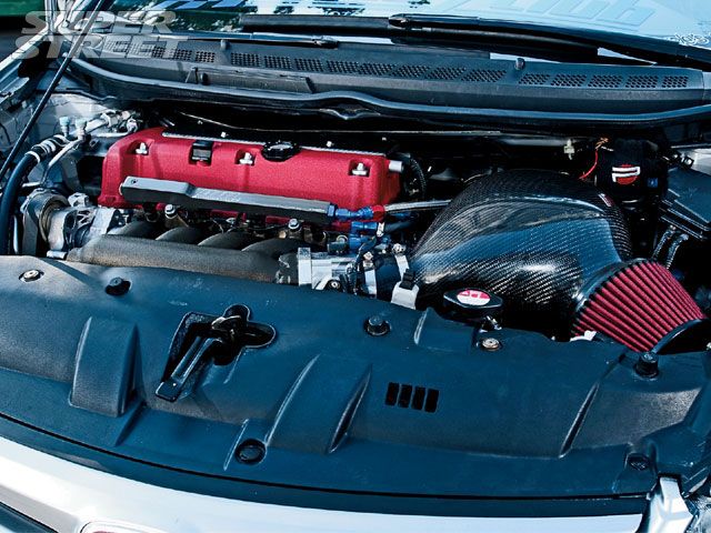 Под капотом: «гибридный» двигатель объемом 2,0 л DOHC i-VTEC блок K20/головка K24; доработка от Realtime Racing (расточка и полировка головки блока цилиндров, расточка и полировка впускного коллектора RBC, балансировка низов и полная сборка двигателя); распределительные валы, фиксаторы, клапана и увеличенный масляный поддон Realtime Racing Spec; шатуны Carillo; поршни CP 12.5:1; клапанные пружины Eibach; 70-мм дроссель BDC 70mm, регулятор давления топлива и топливная рейка BDC; топливный насос Walbro; выпускной коллектор Buddy Club race spec и выпуск pro spec; впуск Password JDM Intake (прототип), карбоновая крышка на свечи зажигания, крышка маслозаливной горловины повышенной прочности, накладки на бачки с рабочими жидкостями, перенос аккумулятора.[/b]