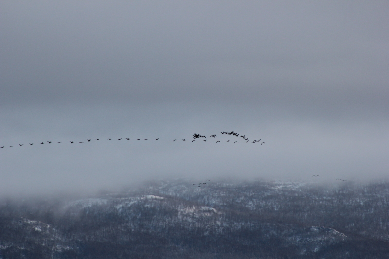 Сегодня над городом ,в обед( 12ч.30м) прошёл большой табун гуменика на высоте, в направлении Ольского лимана.