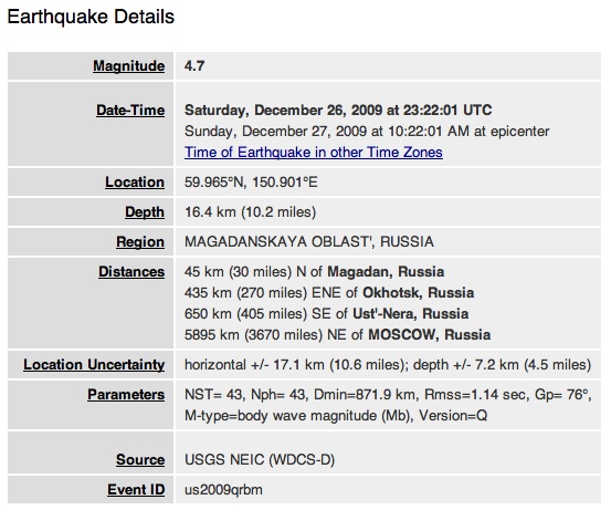 А вот и акутальные данные от USGS. (http://earthquake.usgs.gov/earthquakes/recenteqsww/Quakes/us2009qrbm.php)