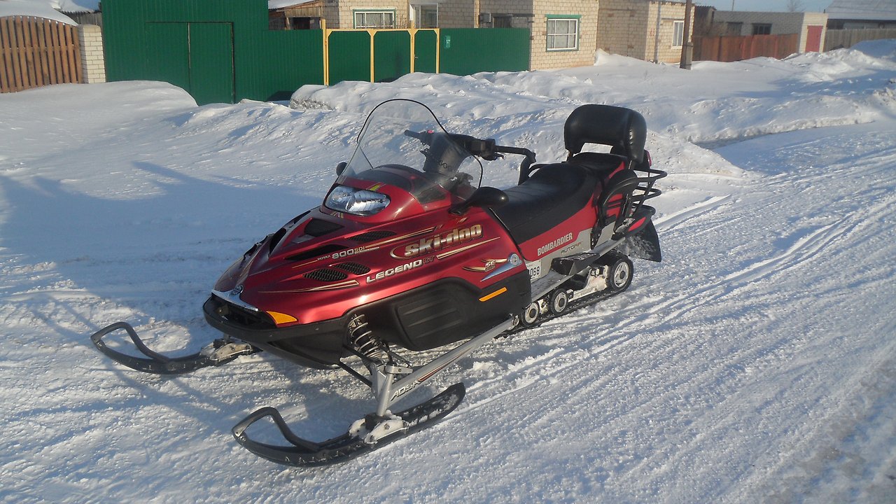 Продается Bombardier Ski-Doo Legend GT SE 800 SDI, жидкостное охлаждение, 2004 года выпуска, 140 л.с., максимальная 200 км/ч (разгонял 196) пробег 4500 км, гусеница зашипована, + новая гусеница талон 45, + новые коньки, установлен новый ремень, + новый ремень. Фото с инета, в продаже аналогичного цвета.