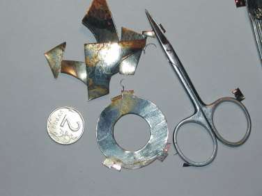 Третий способ состоит в изготовлении простейшей накладки с усиками на цоколь лампочки. Для этого, необходимо приготовить кусок жести, например от старой консервной банки, размерами не меньше чем 6х6 сантиметров. И еще понадобиться двухрублевая монетка, маникюрные ножницы, плоскогубцы, и какая-либо чертилка или маркер.