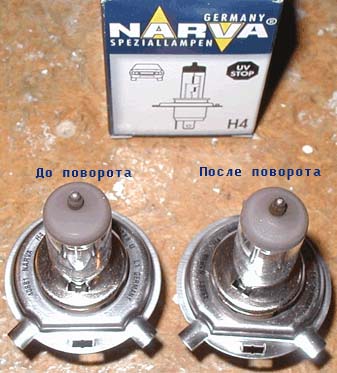 Сгорела у маман лампочка в фаре. Поехал покупать "такую же". Как оказалось, усики на лампочке тупо загнуты, в посадочном гнезде стоят метки . А вращается она там свободно, но не проваливается. С помощью плоскогубцев за минуту придал новой лампочке тот же вид и установил в нужном положении.