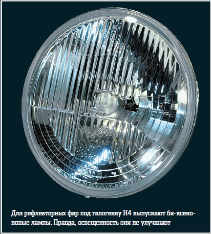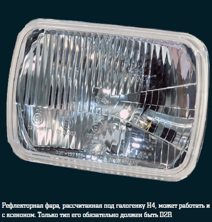 Впрочем, не все так плохо. Есть один тип галогеновых фар, способных почти корректно заставить работать «легкоустанавливаемый» ксенон. Это, как ни странно, фары древней конструкции с параболическим отражателем и рифленым стеклом. Такие можно встретить на российских «Нивах» и некоторых импортных машинах преклонного возраста. Но не любой ксенон подойдет даже сюда. Надо помучиться и поискать лампы типа D2R. Они редко встречаются и отличаются от распространенных D2S нарисованным на колбе отражающим экраном. За счет него и убираются «неправильные» лучи. Правда, светораспределение фары все равно отличается от идеала, но по крайней мере не настолько критично, как в остальных случаях.