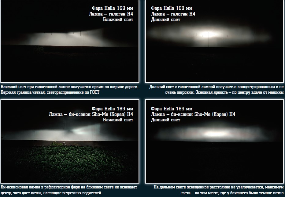 В конечном результате встречных водителей не ослепляем, правую обочину хорошо видно. При переключении на дальний свет также все хорошо освещается.
