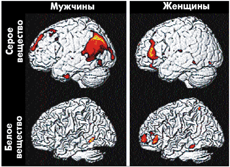То, что мужчины в отличие от женщин думают больше серыми, самыми «умными» клетками, в конце мая наглядно продемонстрировал профессор психологии Ричард Хаер из Калифорнийского университета с