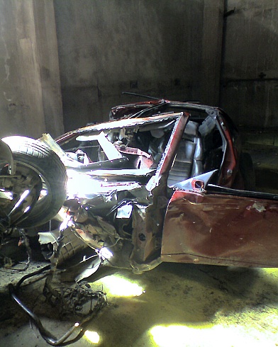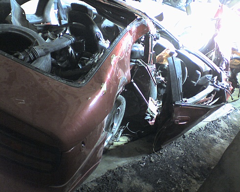Решил друг купить себе японца, да что бы кушал мало литров 6 на сотку не больше. Короче подкопил денжат и двинулся в Усурийск. Понравился ему МАРЧ, но увидел на рынке фашку и влюбился. Фашка атмо на мехе, доки в поряде(150 кобыл), цвет тухлая вишня, стоковая. Продавцы предупредили, что собрана машина из двух, короче морда от другой приварина. Не смутило и купил он ее. Добирался домой своим ходом и не говорил на чем. По прибытию, своим выбором удевил всех. Ну и давай мы резину на радостях жеч, на учет не ставили дубак подкрадывался. Ну вот и зима, пять месяцев стояла фашка в гараже и ждала своего часа. УРА апрель дождалась и мы с ней. Поездил он на ней и понял, что машина кушает много, а продовать в чужие руки не хотел. Я тоже себе такую хотел и он мне ее предложил, я не раздумывая согласился. Начал подбивать денежку, а дружище мой поехал поставил ее научет. Я так и не понял зачем, но гайцы сказали что сначало на учет ее, а потом уже продавай, спорить нестали поставили без проблем. У меня кровь кепит хочу машину мечты, но ровно через неделю после получения номеров попадает в аварию 170 км в час входит в правый поворот и не справляется с прекрасной леди, машину закручевает по часовой и вот он СТОЛБ. удар пришелся в переднее левое крыло морду оторвало сразу по понятным причинам, остальная часть машины еще 50 метров крутилась по дороге.