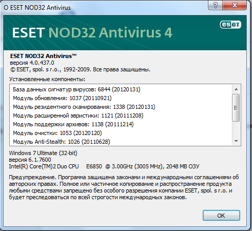 6. Наличие антивиря , его имя-версия и его актуальность (когда обновлял в последний раз)