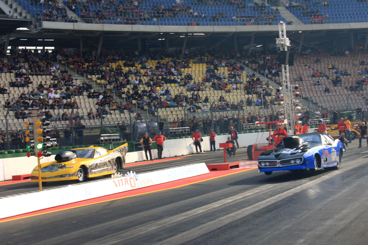 NitrOlympX — это ежегодные европейские соревнования по драг-рейсингу среди профессиональных дрэгстеров и гражданских автомобилей, которые проходят на специальном прямом отрезке кольцевой трассы Хоккенхайм Ринга (Hockenheim Ring). Более того, это не просто покатушки для скучающих гонщиков — это соревнование, в рамках которого проходит один из этапов чемпионата FIA по драг-рейсингу.