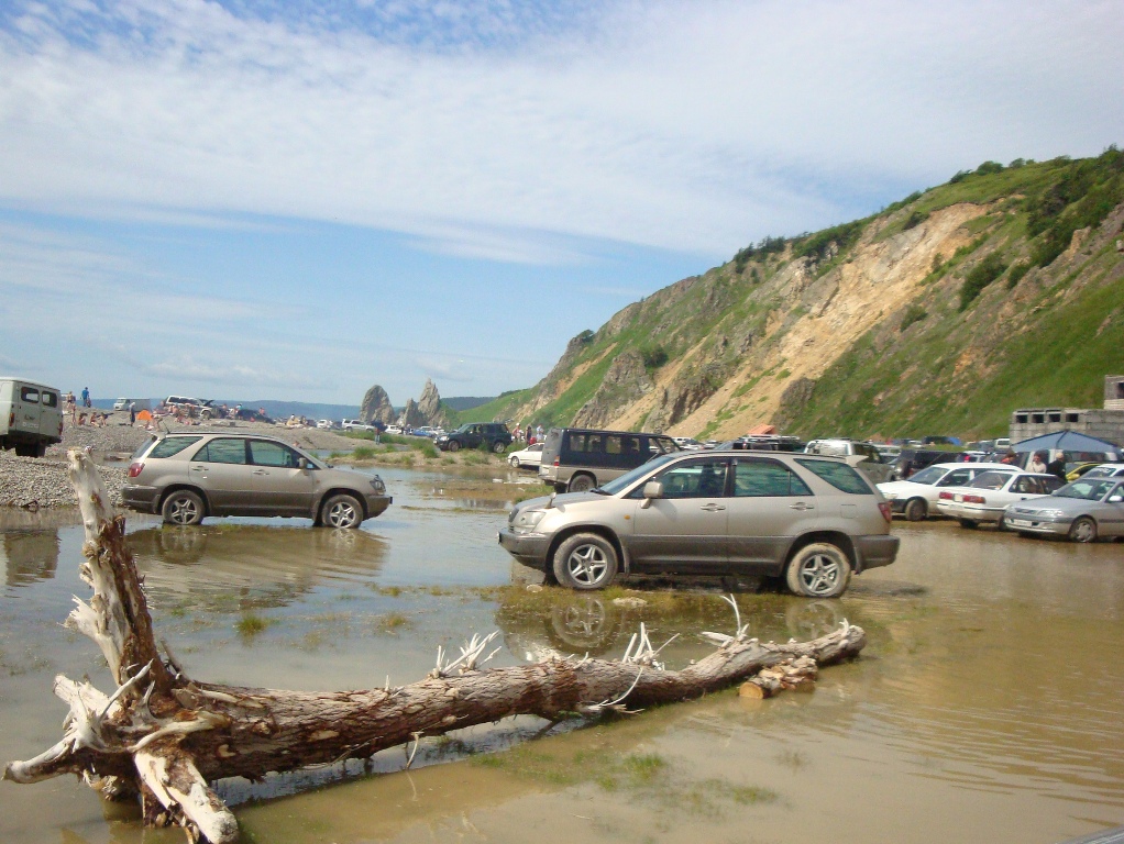 мы просто поставили машину, была суша, а когда пошли за пляжными пренадлежностями, то увидели, что наша машина и другова хозяина стоят на воде, вот и решила сфотать