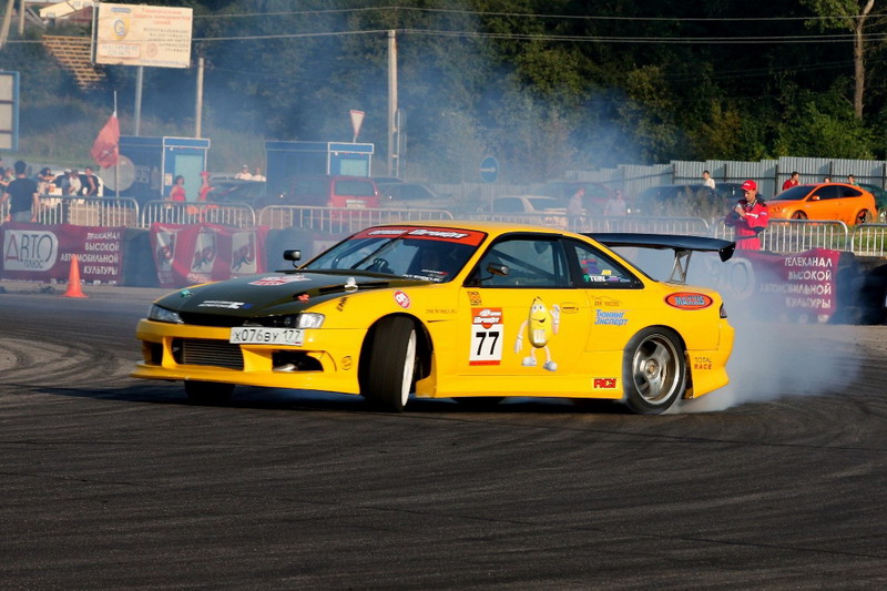 Жёлтая Nissan Silvia в кузове S14 Вильяма Гукасяна из команды 2NR-Works — самый мощный и, пожалуй, самый красивый и интересный автомобиль, принимающий участие в Чемпионате «Формула Дрифт». Поэтому неудивительно, что каждое выступление Вильяма на треке — это не только демонстрация мастерства управления автомобилем в заносе, но и оригинальное и яркое шоу. Как, например, его выступление на 4-ом этапе Чемпионата «Формула Дрифт», который прошёл 6-го сентября в подмосковных «Сорочанах». Вильям Гукасян на своей Nissan Silvia S14 занял второе место, вызвав восторг публики эффектным прохождением трассы.
