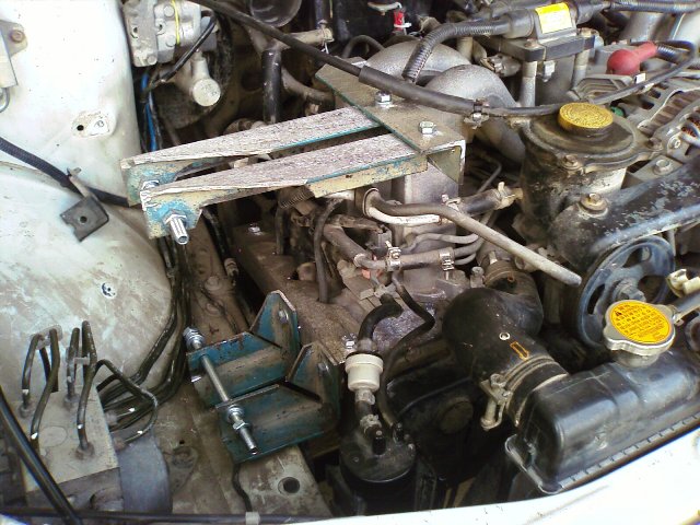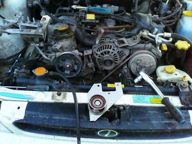 Далее нужно сколхозить обводной ролик для приводного ремня, подойдет любой, но лучше с бортиками (внезапная утрата при езде ГУРа и “Гены” - сильно огорчает *проверил 2 раза*). Схема привода: шкив коленвала-генератор-гур-обводной ролег-чарджер-шкив коленвала. Долго, матерясь и вспоминая “на глаз”, выставлял соосность. Двигатель не разжимал, СЖ по мануалу -10. Катализатор выбит.
