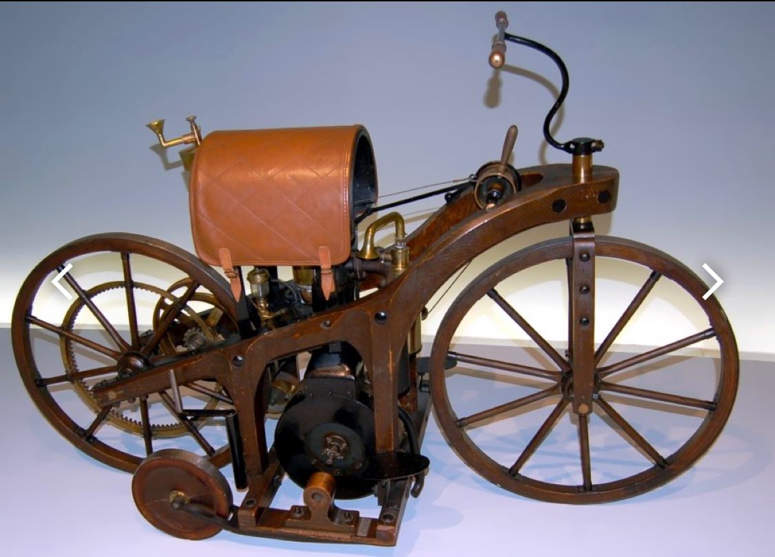 Разработанный Даймлером совместно со своим другом и партнером Вильгельмом Майбахом, мотоцикл Daimler Reitwagen (на фото) был практически полностью деревянным и был способен развивать скорость до 12 км/ч.