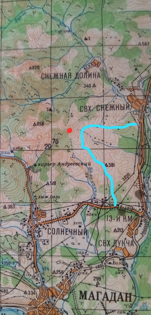 Нажмите для просмотра прикрепленного файлаапофеозом програмы был пеший подъём на гору, которая помечена красной кляксой. судя по следам - туда заезжали эндуристы и эндурасты, но мы не рискнули, откровенно побоялись последующего спуска с этой горы. профессиАналам - профессиАналово, любителям - физкультура, мы знатно вспотели, но оно того стОило. тамошний вид включает в себя всё: Снежку, Орбиту, Марчеканку, Гертнера, Нагаево, море у Арманского побережья, Клёпкинскую долину, долину ТЭЦевской лыжни, распадок любительской лыжни через Малый и Большой перевалы, гору "Тысячник". шикардос полный! высота покорённой вершины около 800 метров. погода - чем выше, тем лучше. брусника - чем выше, тем крупней.