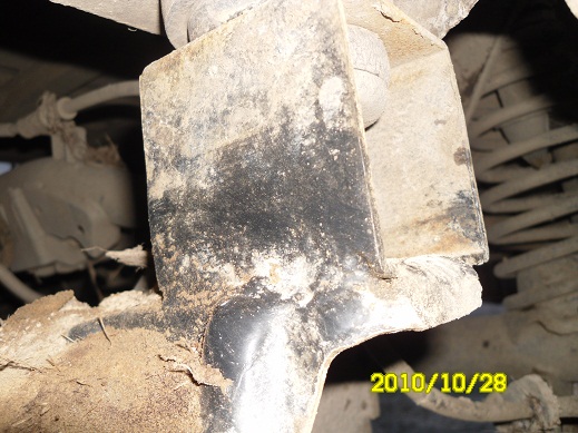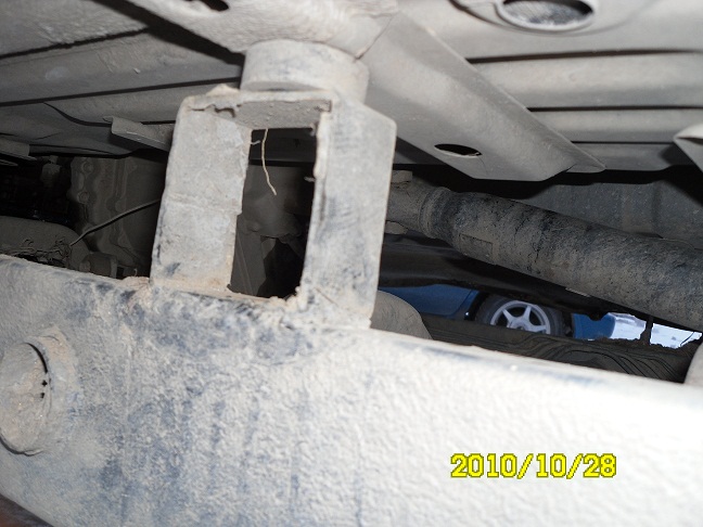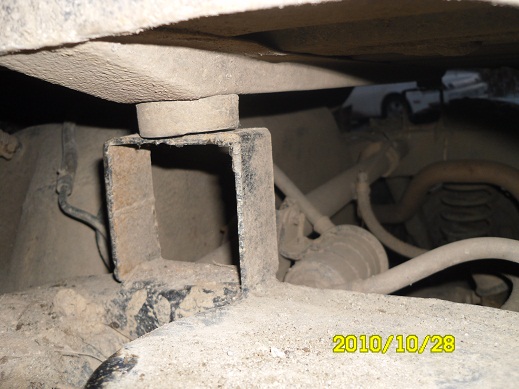 4. на место подушек были поставлены проставки таким образом чтобы грань с отверстием под болты и втулки была сверху, нижняя часть приварена к раме (с.м. фото №2)