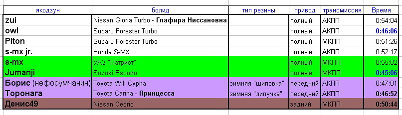 , он на шипах, я на "липучке". Реультат почти не отличим. Он ровнее ездил, правда. Мне б шипы, м-м-м-м рискнул бы обнаглеть на выйти из 40 секунд на сегодняшней трассе.