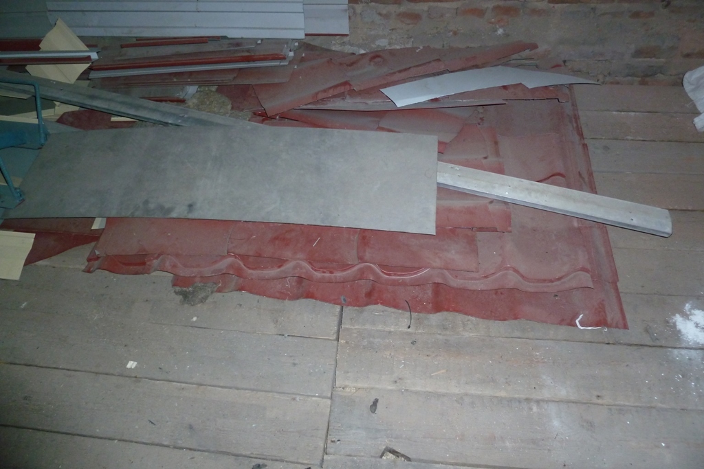 шифер 2 куска, примерно 1х1 м и ещё обезки 0,4х1м (должно подойти вместо асбестового листа)