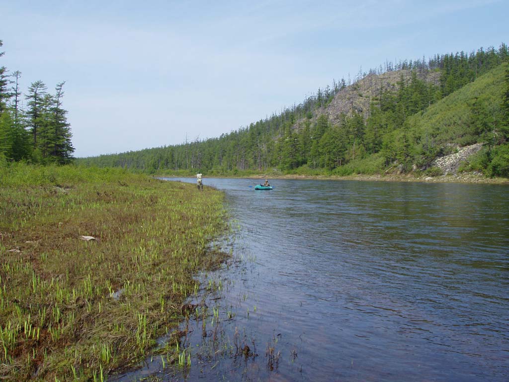 В выходные были в районе Днепровского, хариуса мало и небольшой, проехать по Неригэ только со шноркелем. Подготовленной 80-ке на 35-ых тапочках в иных местах при подъеме против течения, вода по лобовое. Зато видели такого отожранного медведя, что диву дались. Выскакиваем на хребет маленького перевальчика идущего вдоль сопки и видим метрах в 15 вышеозначенного хозяина тайги, отроду гдето около 4 лет. Так даже камеру достать не успели он от 80-ки так дриснул в сопку, что деревья около 15 см в диаметре качало как от смерча над подмосковьем.
