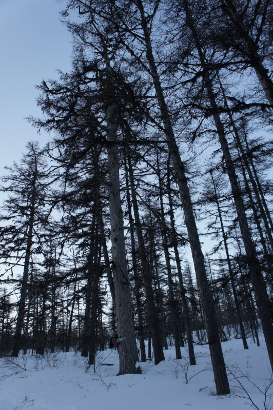 Снег со здешних сопок тоже практически стаял, и они курчавились чёрно-зелёной упругой зеленью вставшего после зимы кедрового стланика- растущей вдоль земли кустарниковой кедровой сосны, покрывающей все неровности местного рельефа и делающей его непроходимым. Приглядевшись, можно было усмотреть тоненькую серую ниточку то ли тропы, то ли дороги, то ли ещё какого-то следа человеческой деятельности, протянувшуюся сквозь эти заросли.