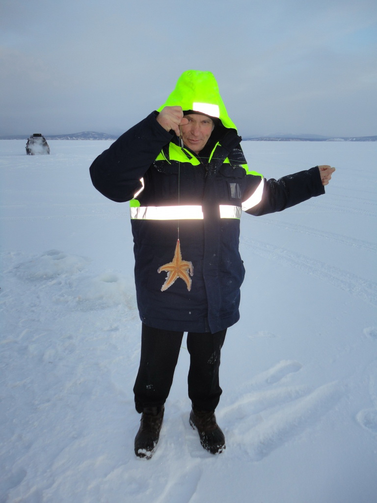 По рыбе: наваги - вал, корюшка подходами, не доходя до нас (не наш день). Мужики предлагали забуриться между ними, под пятку, на перспективном месте, колымская выучка не позволяет.