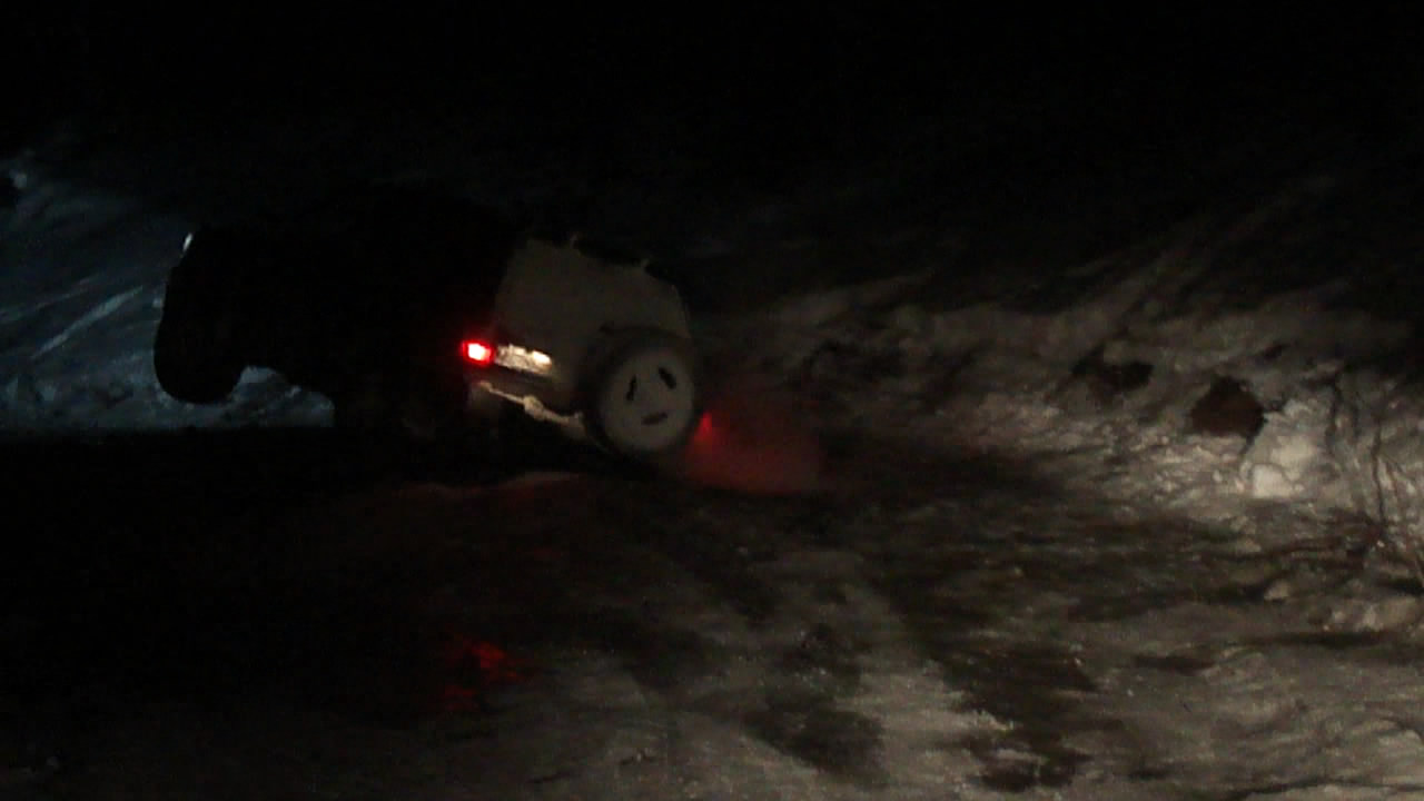 По дороге встречались две машинки - белый старый круглый крузер на грязешлепных колесах (скорее всего мудзила калибра так 42-го) и с ним еще машинка небольшая была. Они почему-то в сторону от дороги отъехали и на льду стояли. Было уже темновато и что за машинка не разглядел.