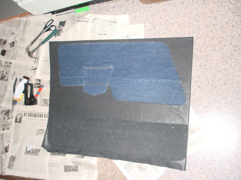 Нажмите для просмотра прикрепленного файламатериалы использовались самые .... дешевые. ДВП нашел на чердаке, куски дермантина, оставшиеся после реставрации задней части салона, старые джинсы.