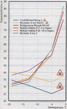Журналисты "За рулем" оценивают "зимние" возможности этой "Хакки" еще выше, чем их коллеги из "Авторевю". "Практически одинаково сильны на снегу и на льду, ни одной слабой характеристики", "На снегу все характеристики лучшие", "Уверенно держатся за заснеженную дорогу", - это лишь короткий список найденных у "Нокиан" плюсов. Однако, и на тесте "За рулем", оказавшись на чистом асфальте, шины "плавали" и "слабо тормозили" на мокром покрытии.