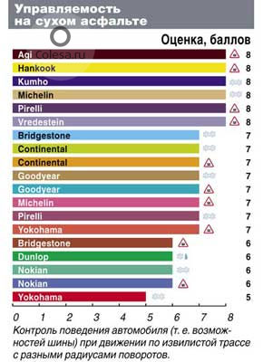 В то же время "шинные" испытания у обоих российских изданий отличаются методикой. Например, у "Авторевю" время разгона измеряется при ускорении с 5 до 35 километров в час, а журналисты "За рулем" - с 0 до 30 километров в час. Вдобавок, отличается и используемое экспертами оборудование.