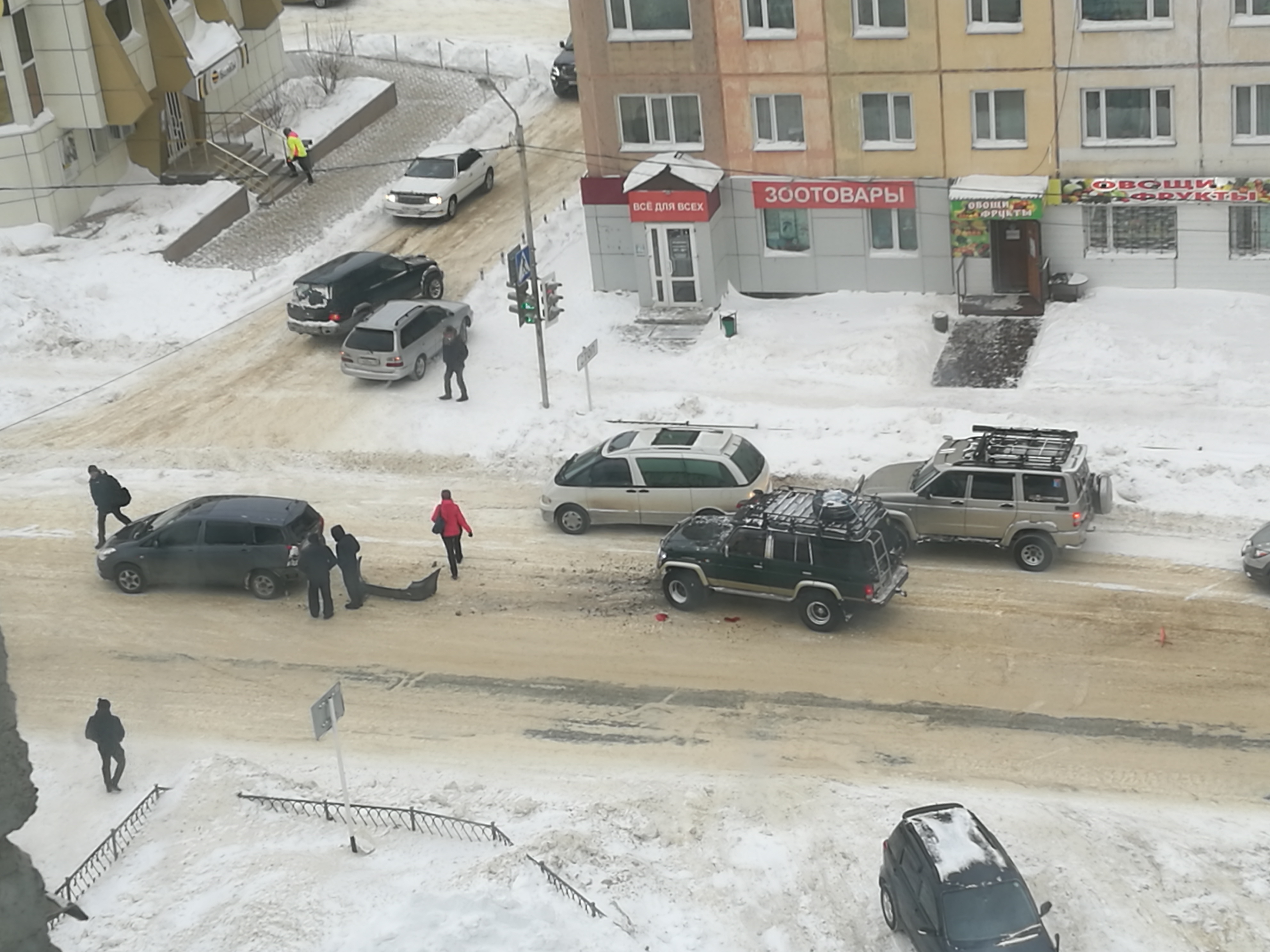 На перекрестке возле Росреестра ЦРВ в старом кузове, похоже не пропустила сотку с Парковой. Но сотка уедет своим ходом, а ЦРВ нет...
