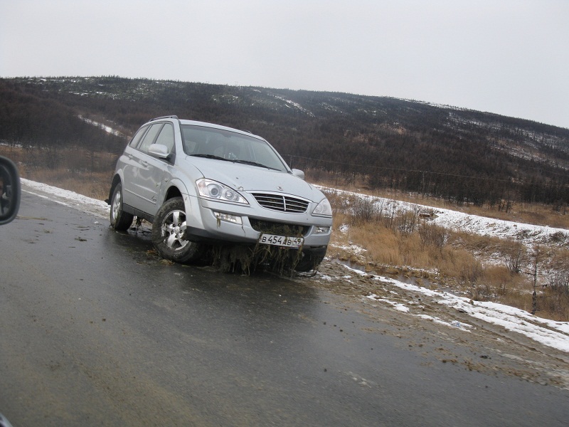 Судя по следу на заднем бампере. Можно предположить, что Калдину наверное кто-то боднул в .опу и она слетела сверху.