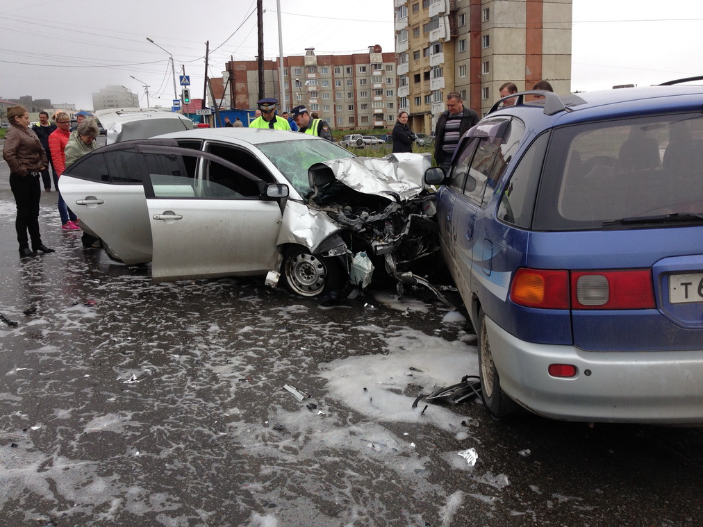 на северном сиянии не доезжая поворота впечатались две машина. одна ехала прямо другая как я понял резко повернула.