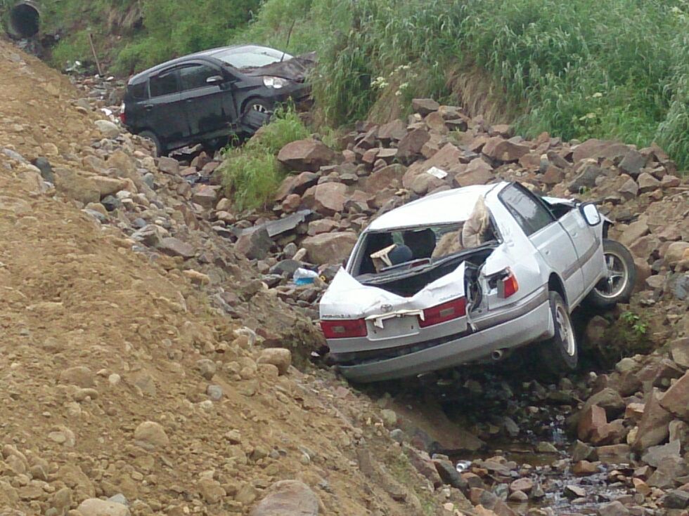 Этот водятел меня обогнал и еще джипика прям на повороте на Маску. Ну а дальше кувырки пошли. Хотели вытаскивать его, но вылез сам через дыру в лобовом! Скорость хорошая была. Хорошо встречная далеко была!