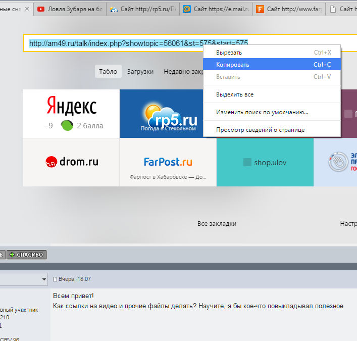 Шум49, щелкаешь в адресной строке чтобы ссылка была выделена как на картинке, правой кнопкой мыши - копировать, затем в поле ввода сообщения, так же правой кнопкой мыши - вставить. Все, ссылка добавлена. Это наверное самый простой способ.