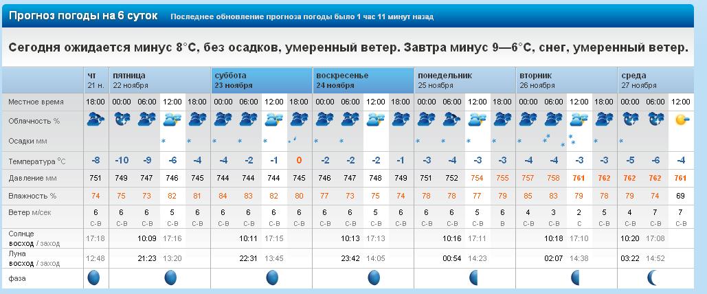 Ребят, завязывайте смотреть прогнозы на яндексах, маилах, подобных им и на встроенных в телефон виджетах - они вообще не понятно от-куда погоду берут! За пару лет наблюдений за сайтами прогнозов и реальной погодой (масло в ДВС замерзало при ниже -20, хоть и заявлено было 5W40, так что пришлось следить за темп.окр.среды) вывел "золотую середину" между средними показателями Гисметео и Расписание погоды 5, они даже в общем совпадают. Но даже и им верить дальше 3-х дней нельзя, т.к. дальше только шаманы могут предсказать