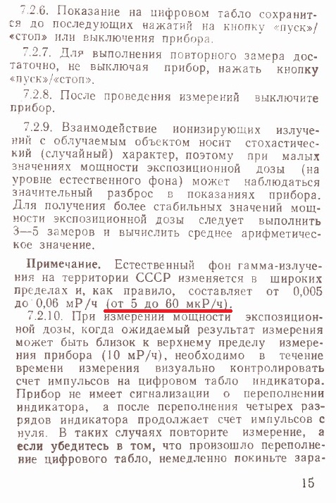 Кроме того, даже для конкретной местности не существует "нормального фона" как постоянной характеристики, его нельзя получить как результат небольшого числа измерений.