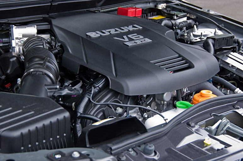 Теперь глянем, что собой представляет и откуда родом 3,2-литровый 6-цилиндровый агрегат. Напомню, что ранее аналогичная модель оснащалась V-образным мотором в 2,7, а не в 3,2 литра, как сейчас. Фактически среди машин класса light cross-country отечественного (японского) производства такого мощного — в 224 л.с. — двигателя нет больше ни у кого. Однако следует учесть, что задача Suzuki — поддержать свой высокий общемировой статус, так что подобный мощный мотор там, на мировой сцене, отнюдь не окажется лишним. Скажем, в Северной Америке с успехом продается автомобиль на платформе, разработанной инженерами GM (General Motors), который проходит как Suzuki XL7. Что он собой представляет? Это — SUV с тремя рядами сидений, длиной более 5-ти метров. Получается, что на сегодняшний день XL7 — самая большая машина, выпускаемая под маркой Suzuki. Так вот, этот новый 3,2-литровый мотор — не что иное, как заимствование у своего американского родственника. Правда, нельзя сказать, что его просто взяли и переставили с XL7 на 3.2 XS. Нет, предварительно ему уменьшили кубатуру, ведь американская версия этого V6 имеет рабочий объем 3,6 литра. Так что японский 3,2 литровый V6 — это еще что!