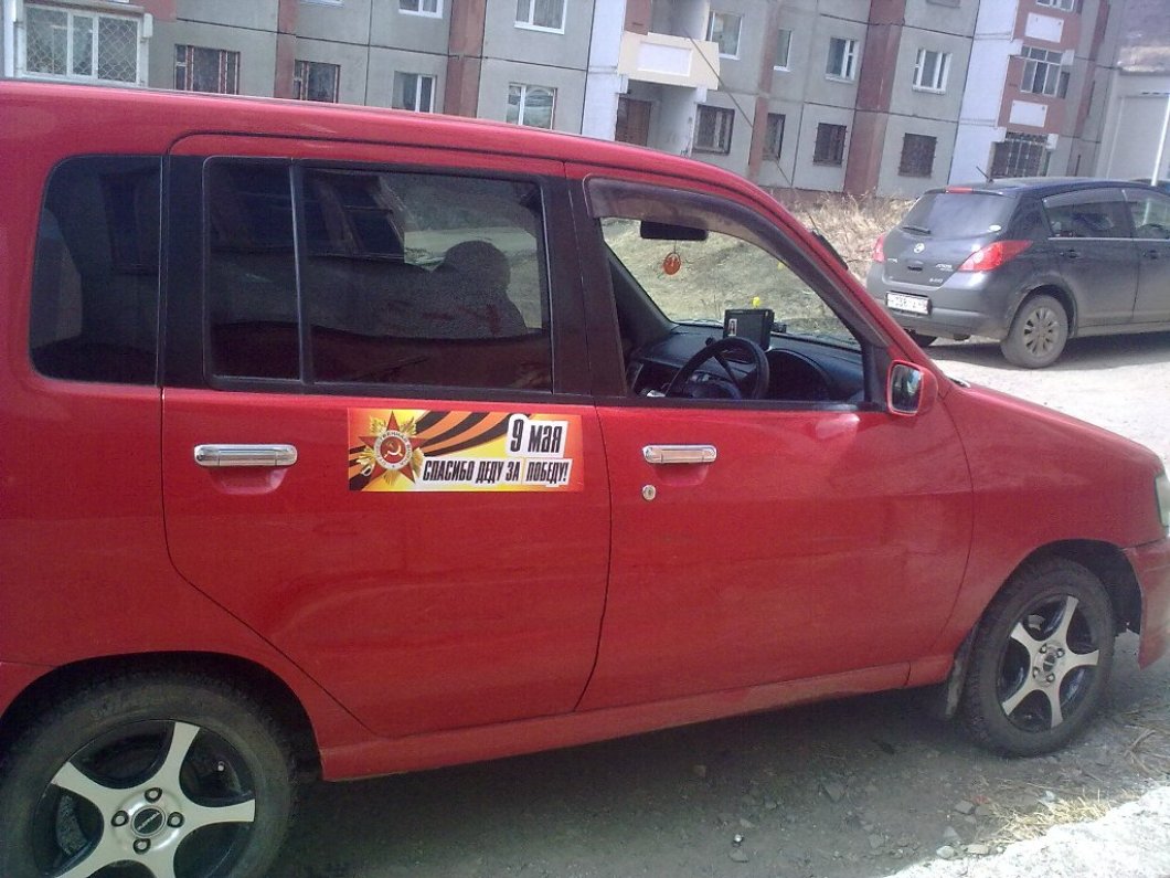 вчера уже видил машину с наклейкой "спасибо деду за победу"