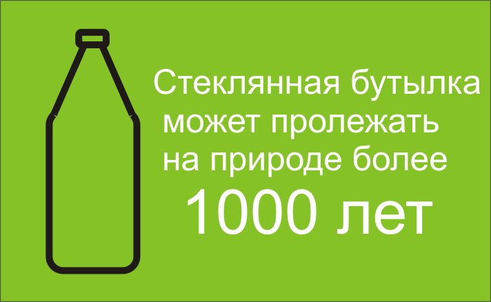 - Стеклянная бутылка может пролежать на природе более 1000 лет